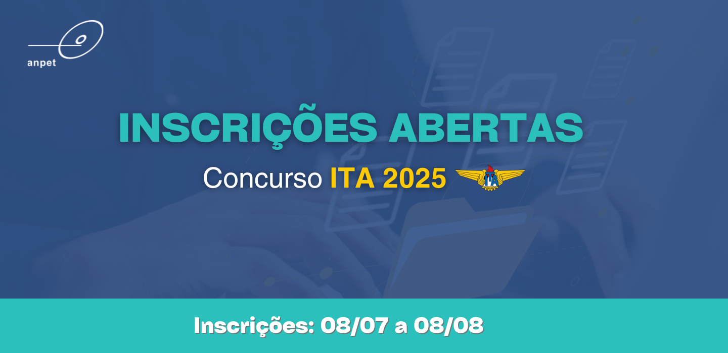 O Instituto Tecnológico de Aeronáutica (ITA) está com inscrições abertas para seu concurso público de 2025. Os interessados podem se inscrever entre os dias 08 de julho e 08 de agosto, pelo site oficial: www.ita.br/concurso2025.