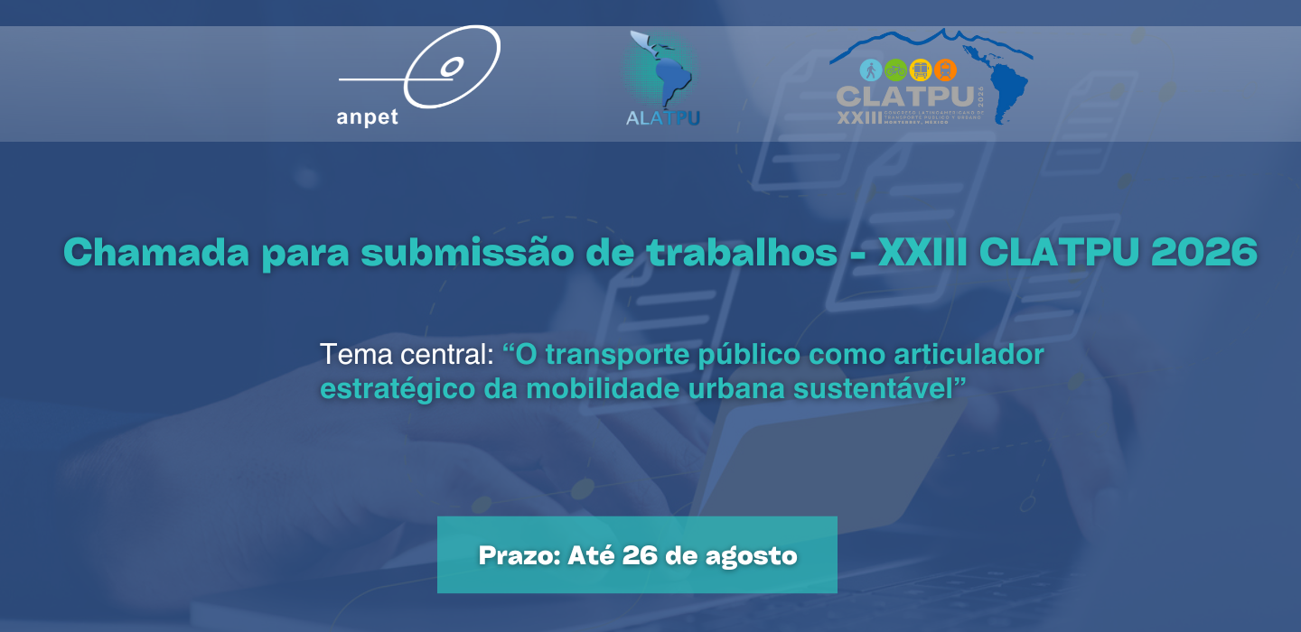 A Fundação Latino-Americana de Transporte Público e Urbano (ALATPU) e o Comitê Organizador do XXIII Congresso Latino-Americano de Transporte Público e Urbano (CLATPU) convidam pesquisadores e profissionais a enviarem seus resumos para o evento, que será realizado de 2 a 6 de março de 2026, no México. O prazo para envio dos resumos vai até 26 de agosto.